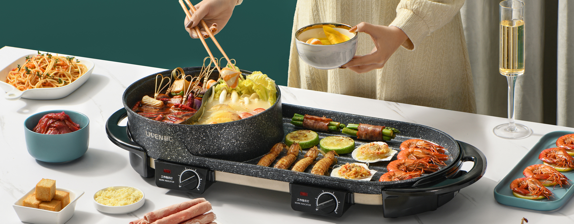 涮烤一體大烤盤、獨(dú)立溫控、雙發(fā)熱管