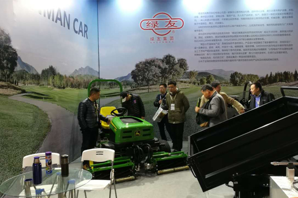 2017年3月17-19日綠友集團參加了在上??鐕少彆怪行呐e辦的2017年體育場地建造管理及設備展覽會”?,F(xiàn)場展出了一臺約翰迪爾2653B坐騎式三聯(lián)剪草機,工作人員對設備的性能、參數(shù)進行介紹,吸引了很多客戶來展位上參觀。