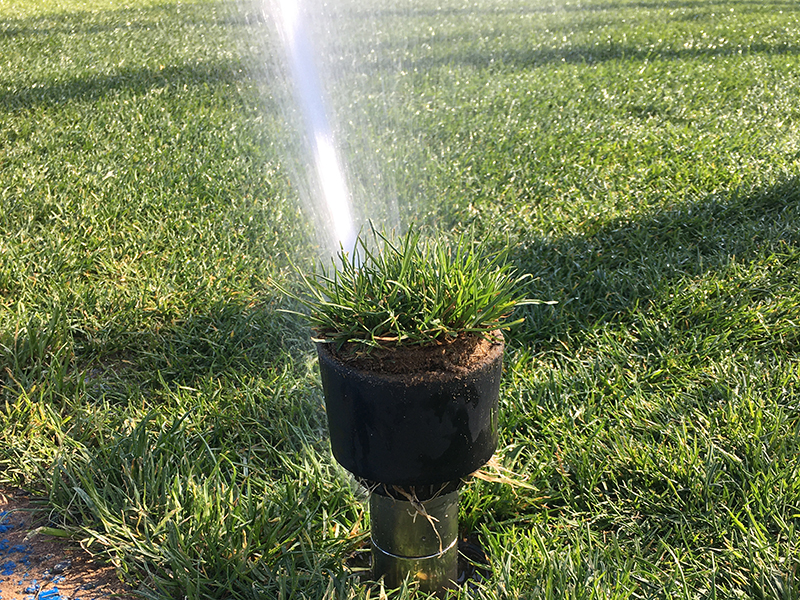 噴頭全部采用雨鳥8005噴頭,并全部配備了草坪杯,實現(xiàn)場地內(nèi)全部是草坪地面,看不到噴頭坑,保持美觀的同時也避免球員在運動時造成球員的腳傷。