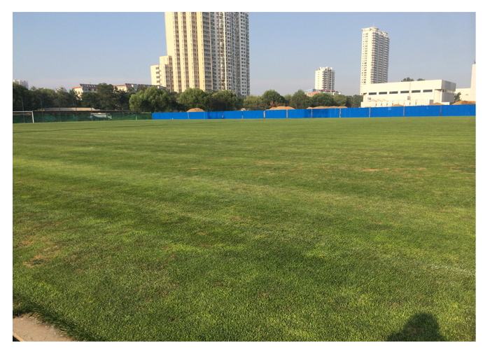 兩個(gè)球場對(duì)比明顯:其中一個(gè)球場使用優(yōu)繪三次,幾乎沒有病斑;另一個(gè)球場使用優(yōu)繪一次,正在發(fā)生腐霉病和夏季斑病,病斑較為明顯。
