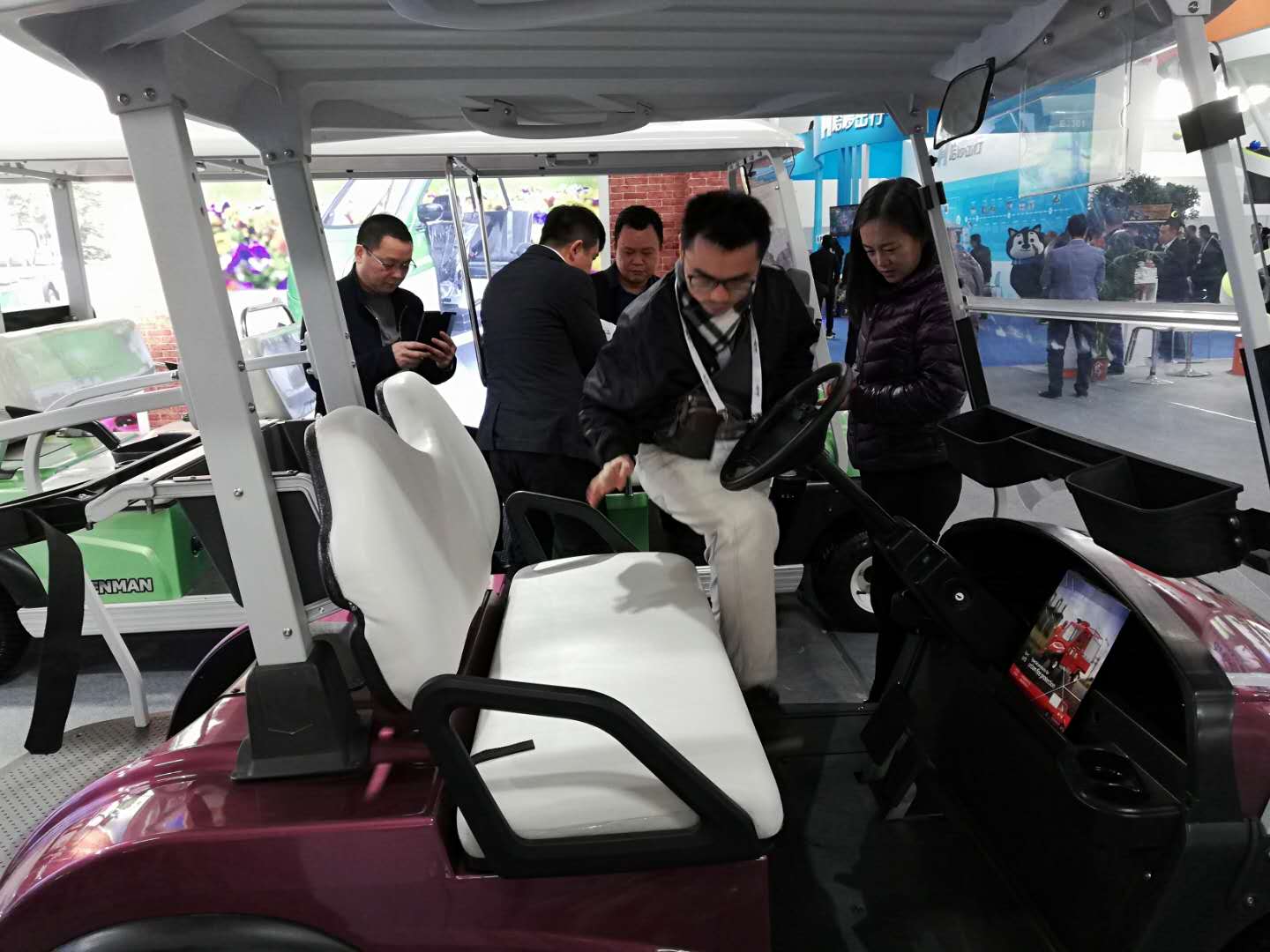 展會(huì)上,我公司電動(dòng)車輛吸引了眾多參觀者的目光,來自景區(qū),游樂場等各行各業(yè)有合作意向的專業(yè)客戶和我公司工作人員進(jìn)行詳細(xì)地咨詢與洽談。