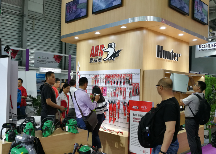 設(shè)備展示區(qū)更是吸引了眾多專業(yè)觀眾的眼光,綠友集團(tuán)展示了自主研發(fā)、生產(chǎn)以及代理的剪草機、打藥機、灌溉系統(tǒng)、冷霧系統(tǒng)、電動車輛、粉碎機、無人機、園藝工具、植保用品等十多種產(chǎn)品。期間,綠友集團(tuán)展位上一直人潮涌動,自產(chǎn)設(shè)備引來諸多關(guān)注。有問粉碎機的,有了解大型零轉(zhuǎn)彎剪草機的,有被冷霧系統(tǒng)所吸引的,有圍觀無人機的,更有很多觀眾現(xiàn)場購買愛麗斯園藝工具。綠友工作人員不知疲倦地解答著各種各樣的問題,也收獲了大量訂單。