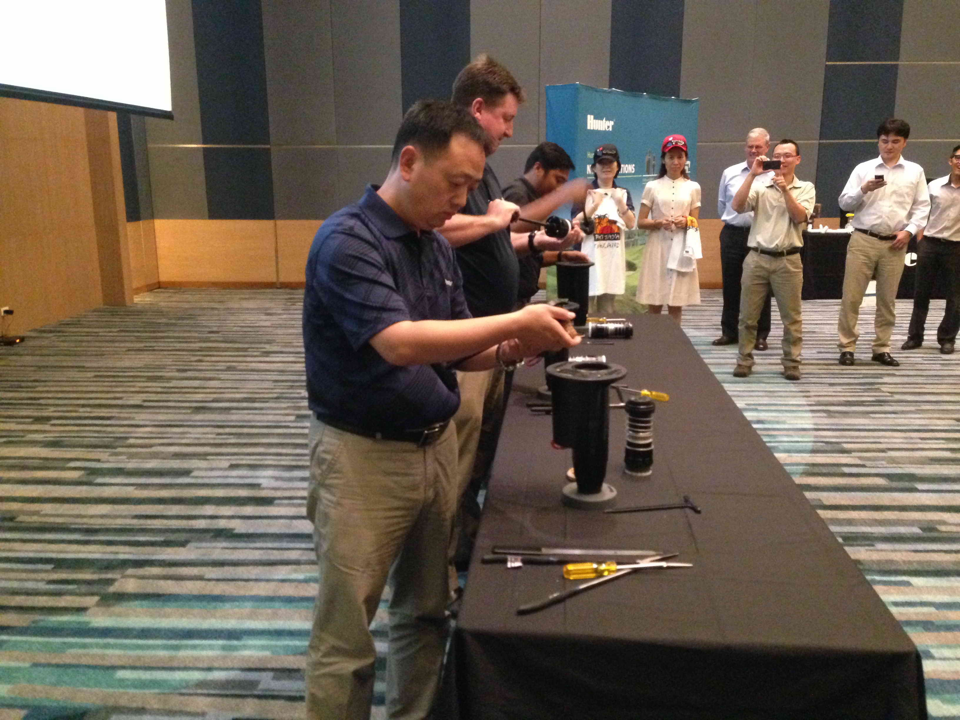 2014年5月6~9日,美國亨特(HUNTER)實業(yè)公司在泰國舉辦了“2014年亞洲經(jīng)銷商大會”。亨特(HUNTER)公司副總裁Barry Pedler先生、HUNTER亞太區(qū)經(jīng)理Mike Steele先生等相關(guān)負責人主持了會議,中國、日本、韓國、越南等國銷售代表參加了大會。中國方面有亨特公司中國首席代表伊志謙先生、綠友集團副總裁劉軍先生以及安悅女士、劉井忠先生、謝海燕女士等銷售人員參加了大會。HUNTER公司的有關(guān)負責人為大家做了亞洲市場銷售趨勢分析報告,各個國家的銷售代表都分享了各自的銷售經(jīng)驗。大會還做了新產(chǎn)品培訓以及實際操作演練。