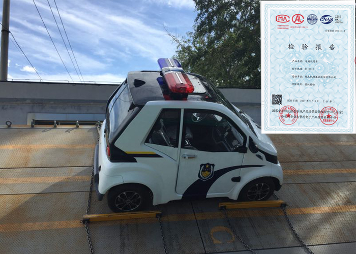 9月8 日, 綠友集團自主研發(fā)的GREENMAN 兩座巡邏車順利通過“公安部安全與警用電子產(chǎn)品質(zhì)量檢驗中心”型式試驗認證。取得該認證后,綠友兩座巡邏車可以合法地使用警徽等警用標(biāo)志。該認證要求較高,綠友車輛以優(yōu)異的性能一次性通過。為了提升GREENMAN 巡邏車在公安、武警、消防等行業(yè)的市場競爭力,我公司委托國家安全防范報警系統(tǒng)產(chǎn)品質(zhì)量監(jiān)督檢驗中心和公安部安全與警用電子產(chǎn)品質(zhì)量檢測中心,針對GREENMAN 兩座巡邏車的主要技術(shù)參數(shù)、制動性能、車外噪聲、側(cè)傾穩(wěn)定性、轉(zhuǎn)向性能、控制設(shè)備絕緣電阻、線束、專用接線盒、續(xù)駛里程、防雨密封性,防火要求等項目進行了檢驗測試,所有檢驗項目均符合檢驗標(biāo)準(zhǔn)要求,最終檢測結(jié)果證明了GREENMAN 兩座巡邏車質(zhì)量的可靠性。