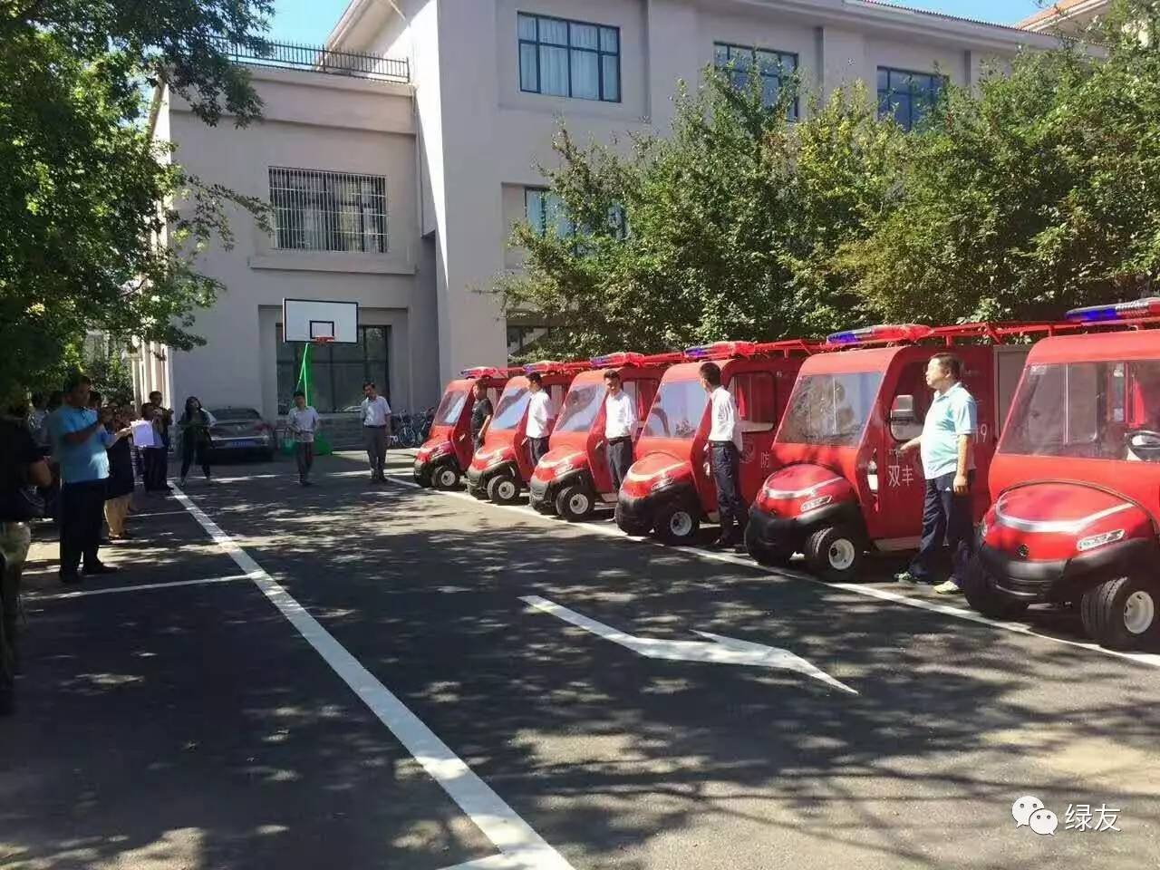 8月4日上午9點(diǎn)半,綠友集團(tuán)向雙豐街道辦事處交付了一批全電動(dòng)高壓細(xì)水霧式微型消防車。為突出建設(shè)平安社區(qū)的決心,雙豐街道辦事處舉行了隆重的微型電動(dòng)消防車發(fā)放儀式。