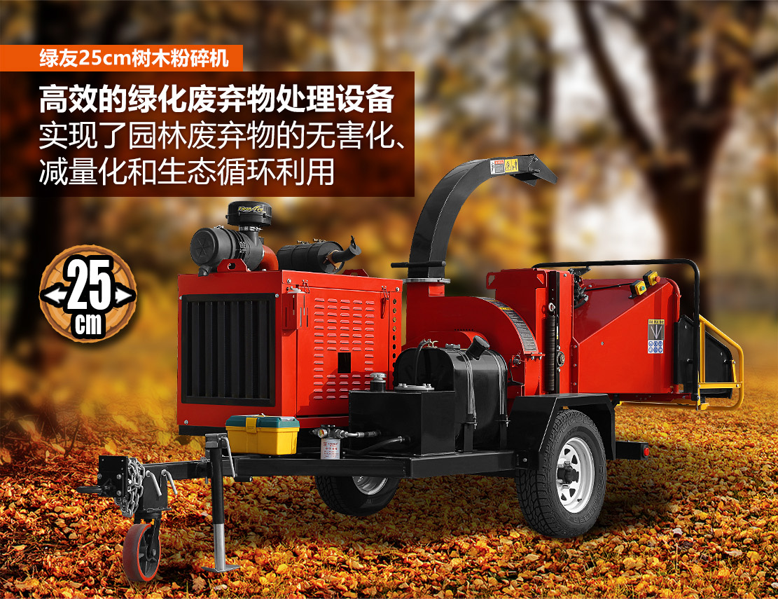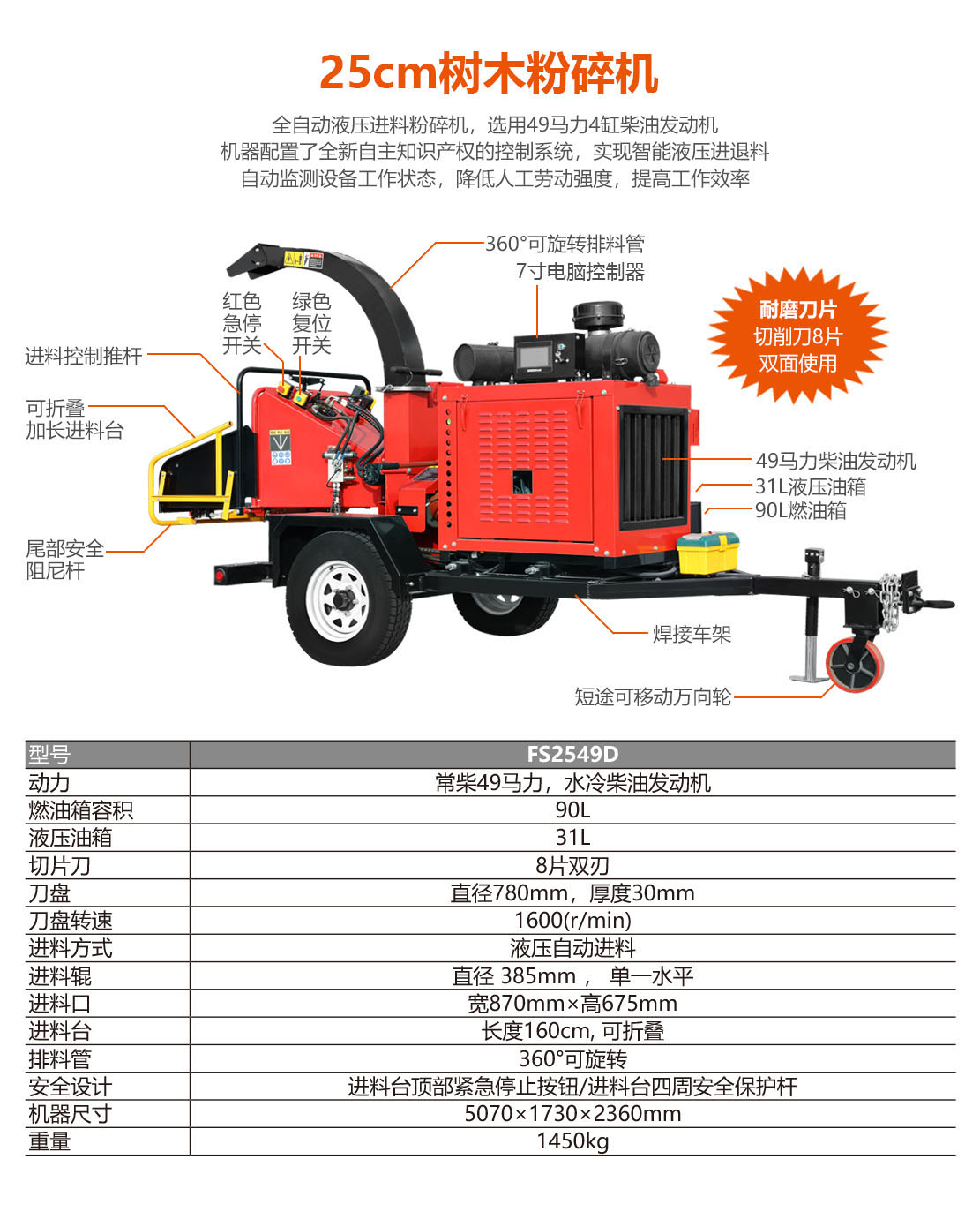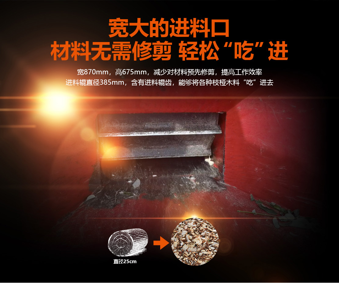 25cm全自動液壓進(jìn)料粉碎機(jī),選用49馬力環(huán)保柴油發(fā)動機(jī)。
