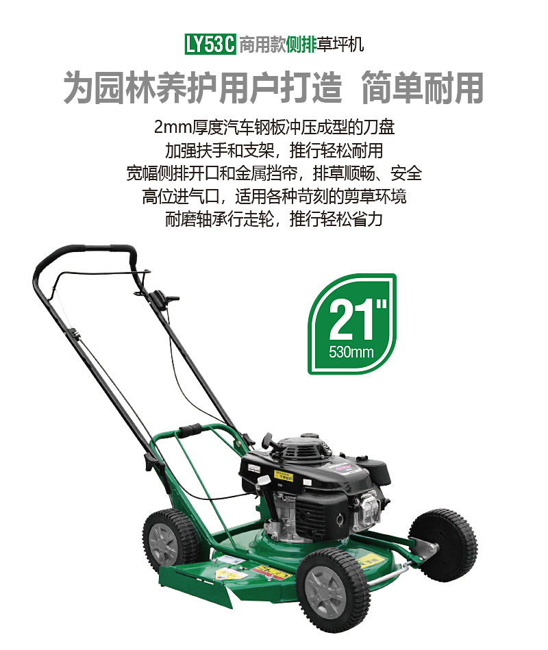 經(jīng)典純側(cè)草坪機(jī),是根據(jù)國(guó)內(nèi)草坪修剪習(xí)慣,設(shè)計(jì)的一款性?xún)r(jià)比高的草坪修剪機(jī),結(jié)構(gòu)簡(jiǎn)單耐用,寬大側(cè)排草開(kāi)口配置金屬金屬擋簾,安全耐磨。